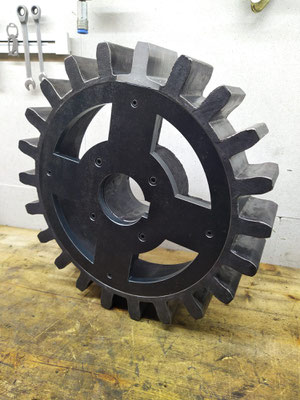 Nach der Reinigung werden defekte Stellen sichtbar. Die ganze Nabe des drehmomentübertragenden Riemenrads ist gebrochen und muss repariert werden.